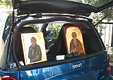 40 χειροποίητες εικόνες, έργα των μαθητευομένων αγιογράφων Βαρβάρας Βερβαινιώτη, Ραλλούς Κούση, Κωνσταντίνας Σαραντάκου και Νίκου Σαρρή, εκτέθηκαν σε συνδυασμό με αυτοκίνητα και εξαρτήματα της γνωστής γερμανικής αυτοκινητοβιομηχανίας. Οι μαθητές δημιούργησαν τις εικόνες κατά τη διάρκεια ενός έτους παρακολούθησης μαθημάτων του εργαστηρίου αγιογραφίας της Ανθής Βαλσαμάκη.